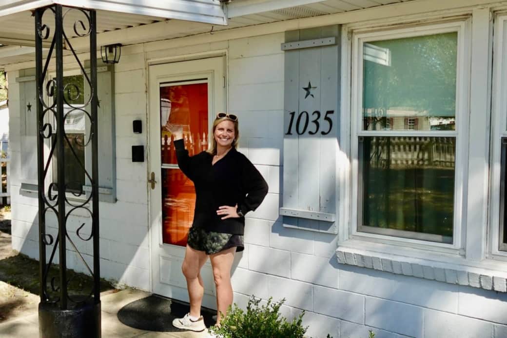 You'll spot the white picket fence as you approach. The driveway is on the right side, leading to the covered parking area. Enjoy step-free entry with a smart lock and a key lockbox for easy access.